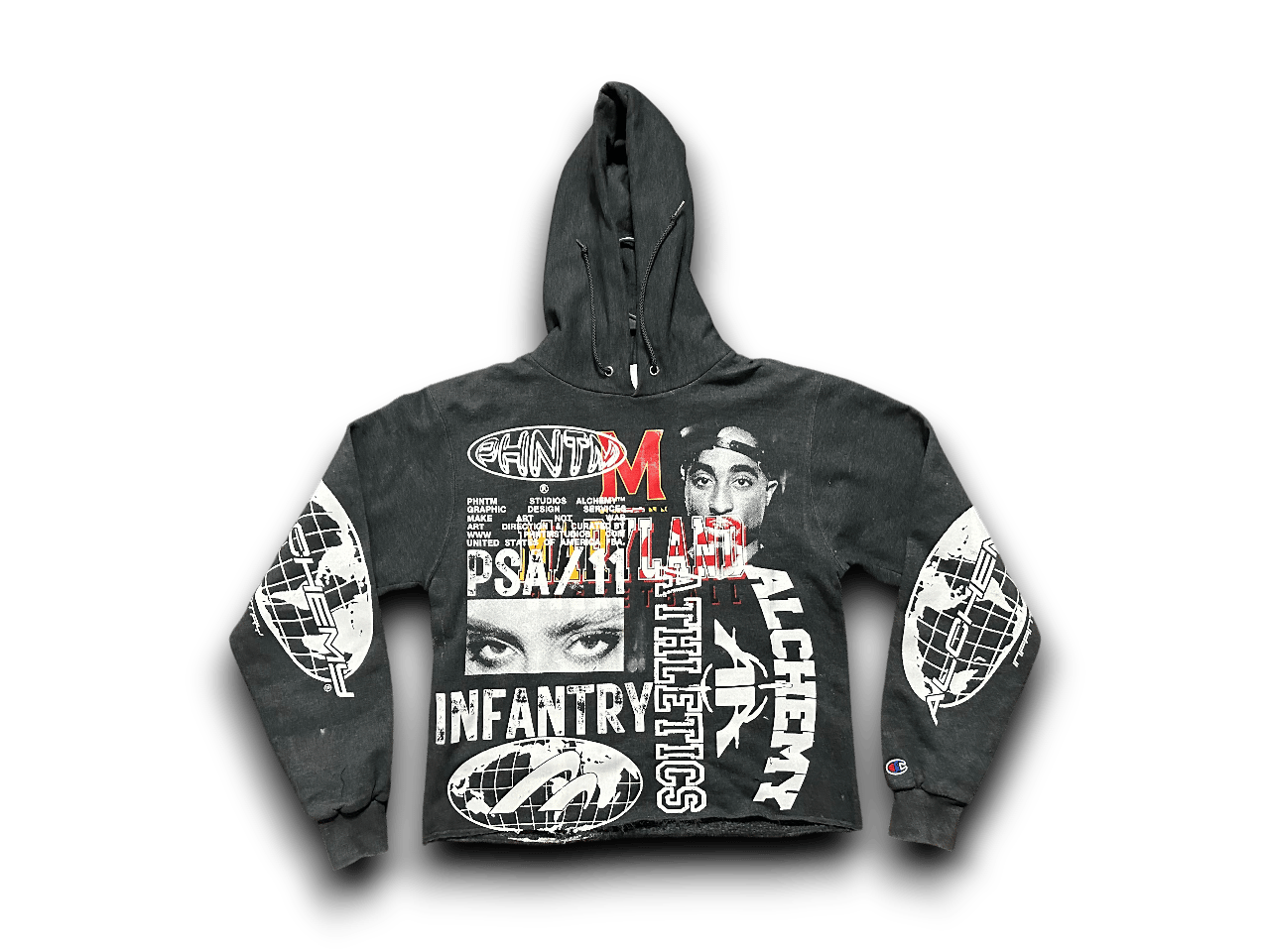 2 pac University of Maryland panther party art dept upcycled screen print dark gray/black hoodie