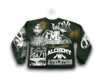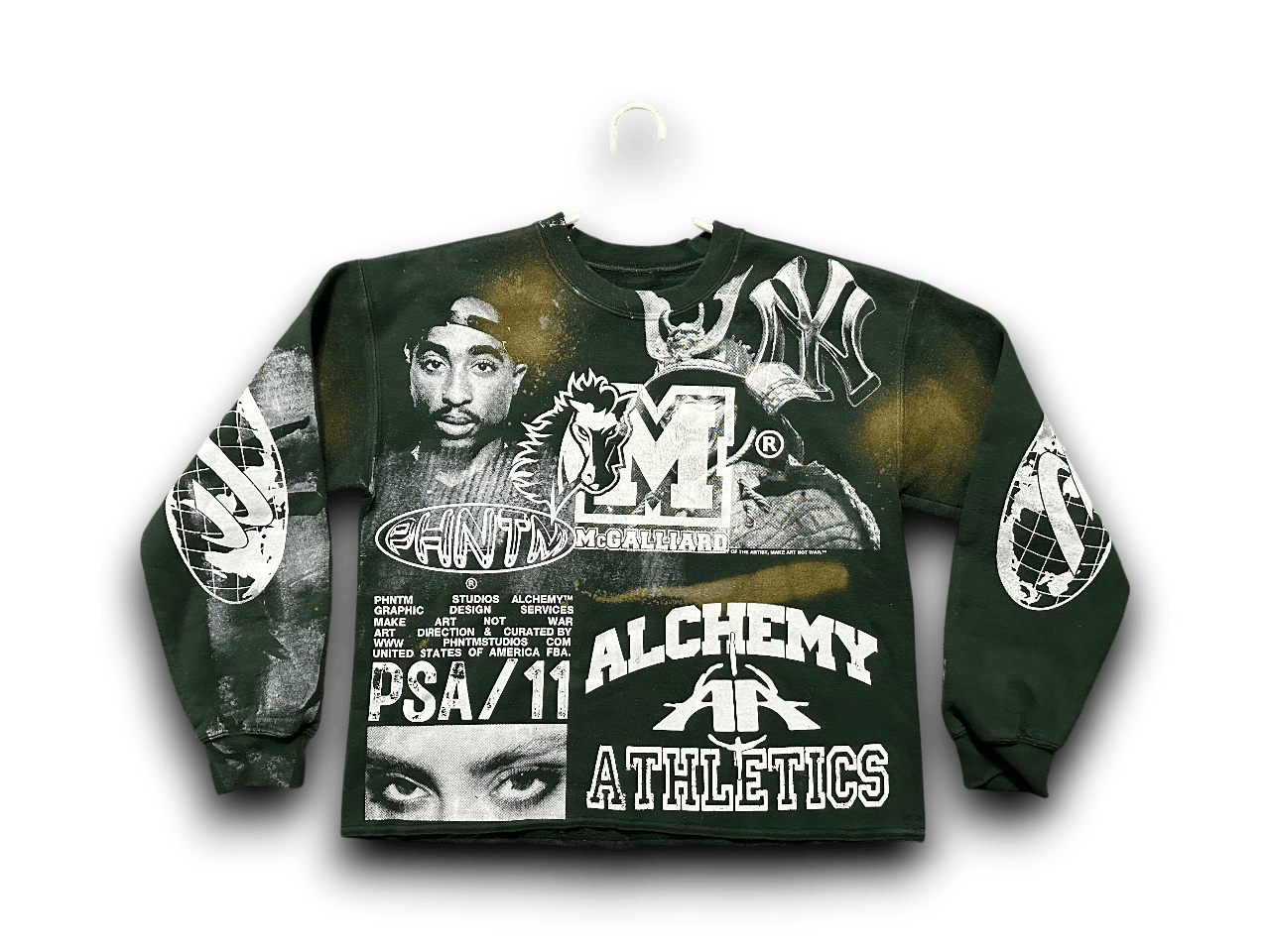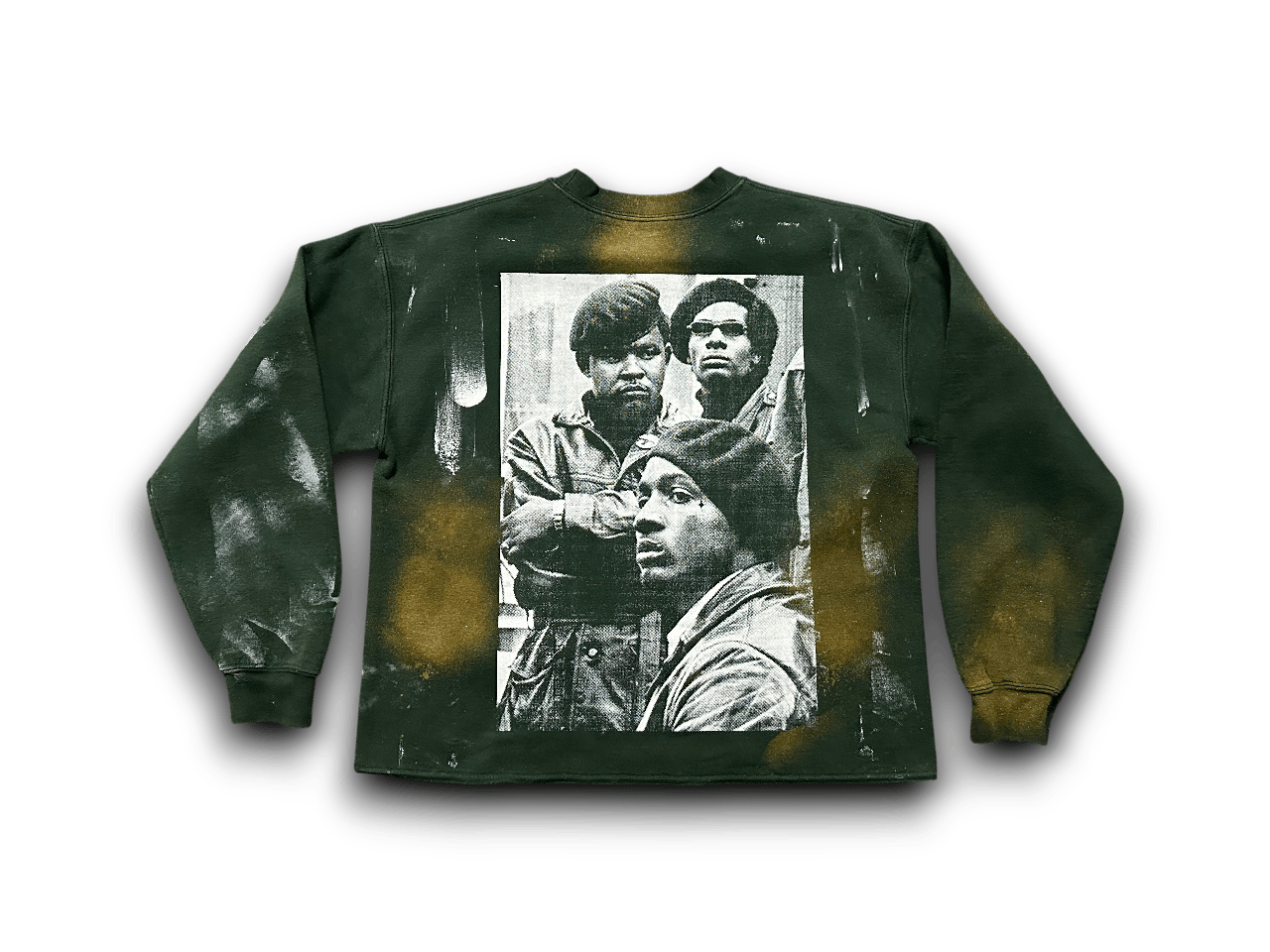 2pac black samurai black panther party art dept upcycled screen print green/white sweatshirt