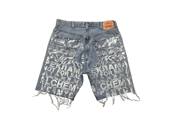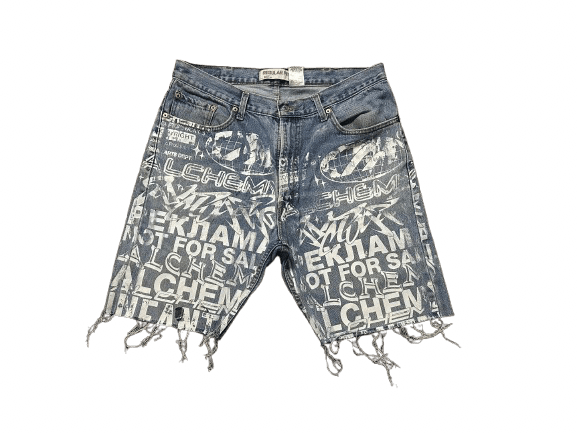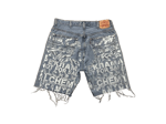 505 Levi's custom screen print blue/white denim jean shorts/jorts