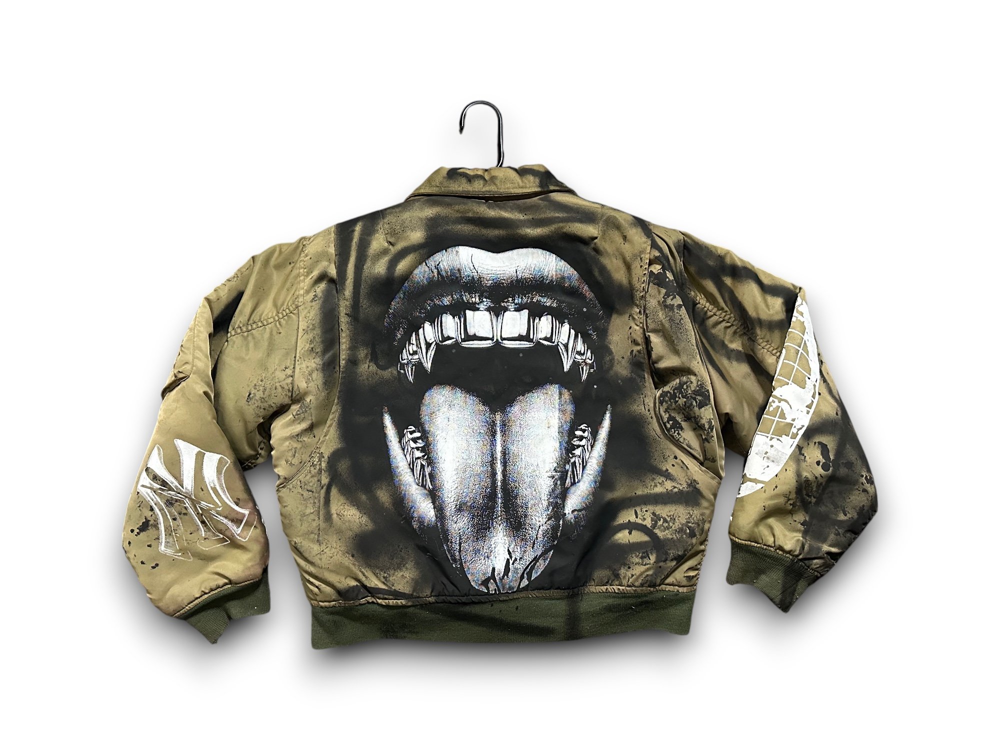 Alpha Industries bomber jacket ma-1 upcycled and reworked screen print olive bomber jacket