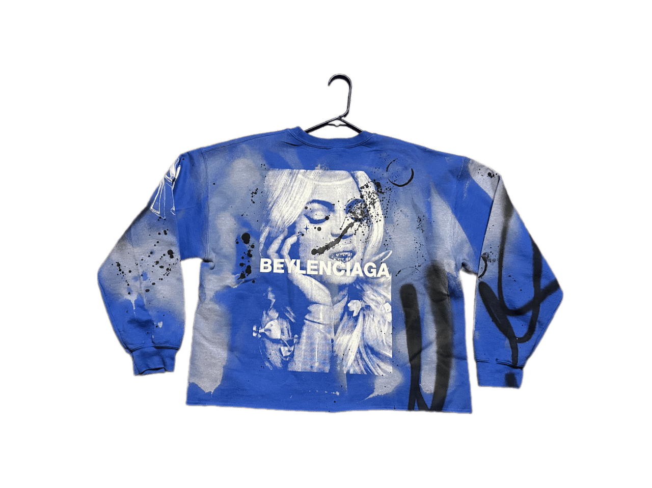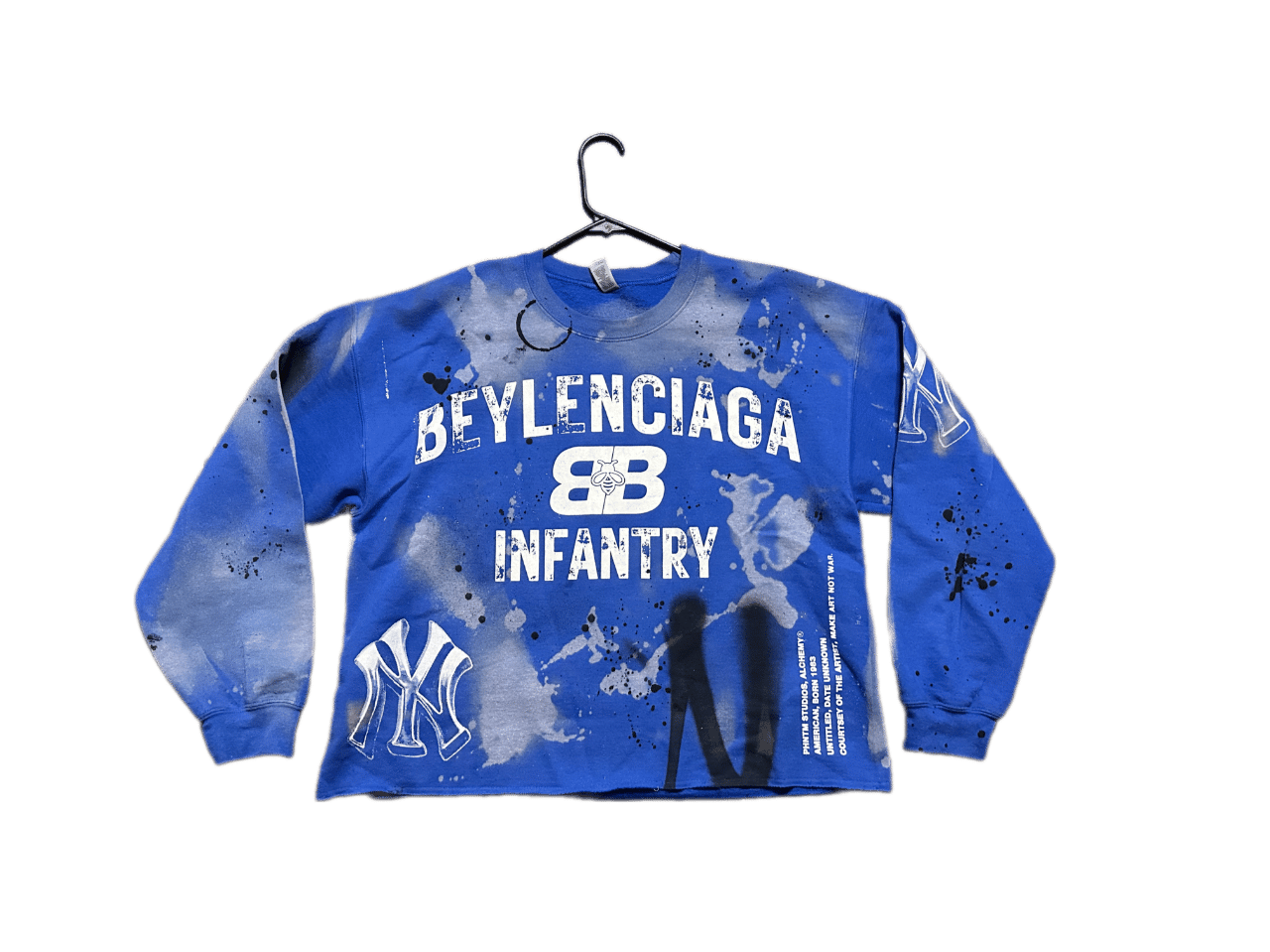 Beyonce Balenciaga NY art dept custom screen print blue/white bleached sweatshirt