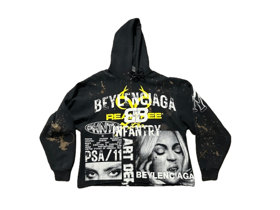 Beyonce Balenciaga NY Real tree art dept custom screen print black/white bleached hoodie