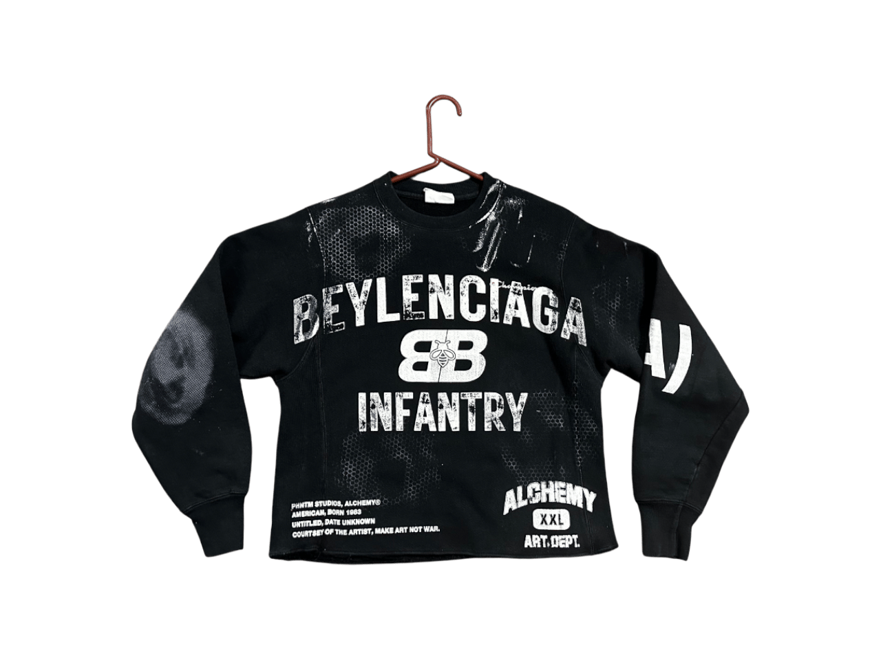 Beyonce Beylenciaga Infantry NY Art dept custom screen print black/white bleached sweatshirt