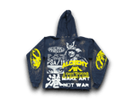Black samurai make art not war Kanji upcycled screen print blue/yellow hoodie