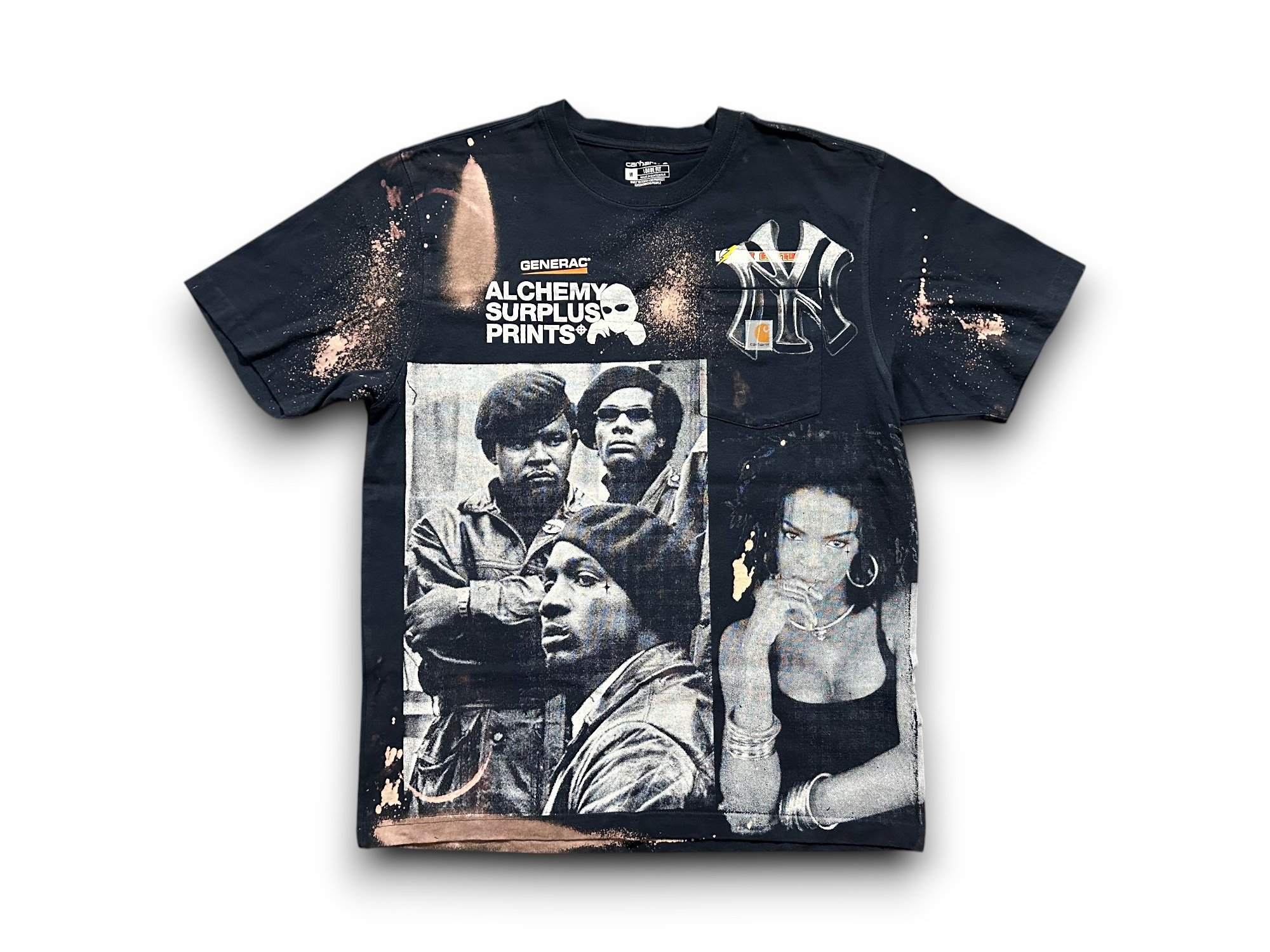 Carhartt lauren hill NY black panther party Upcycled Reworked Screen Print bleached black T Shirt