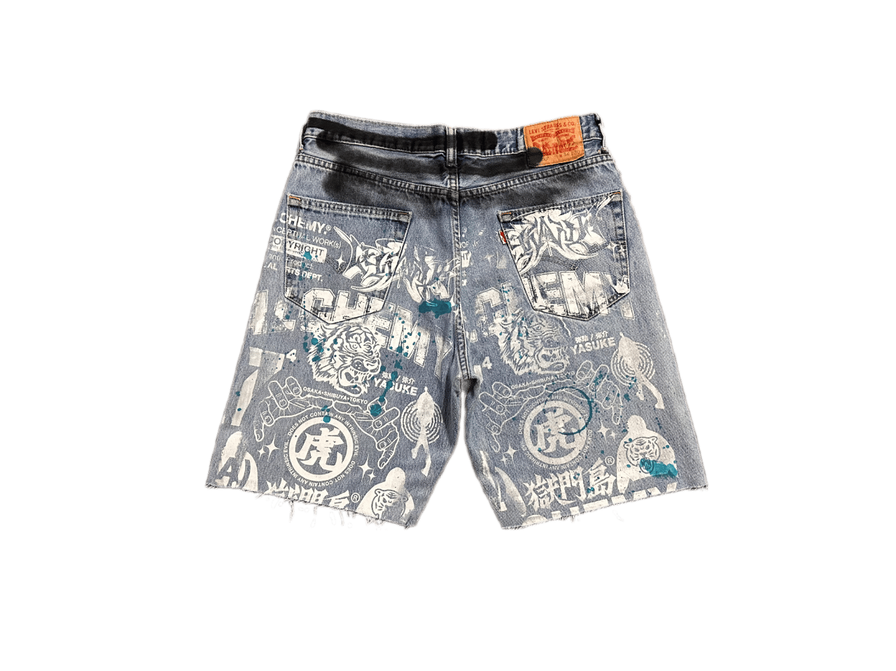 Copy of 505 levi's art dept custom screen print light blue/white denim jeans cut off shorts