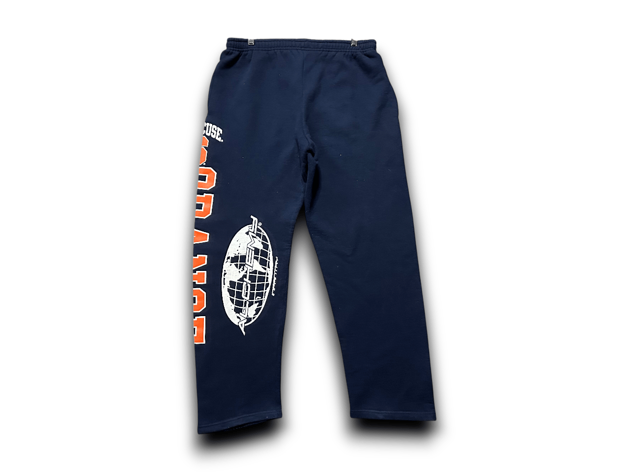 Lauren Hill Aaliyah Ny art dept Syracuse Uni upcycled screen print navy blue/white sweatpants