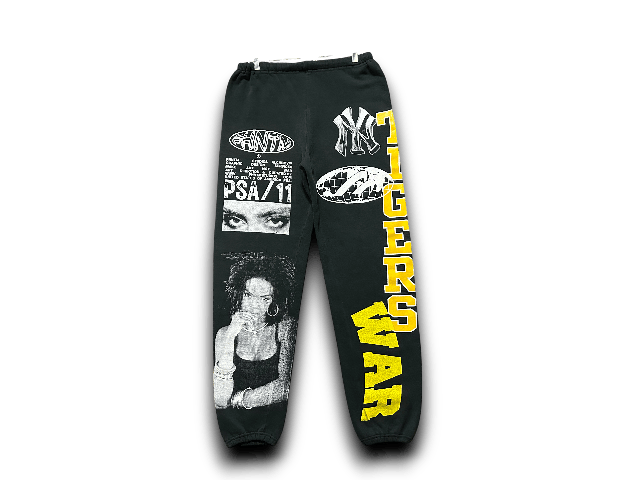 Lauren Hill Ny War art dept Tigers upcycled screen print black/white sweatpants
