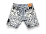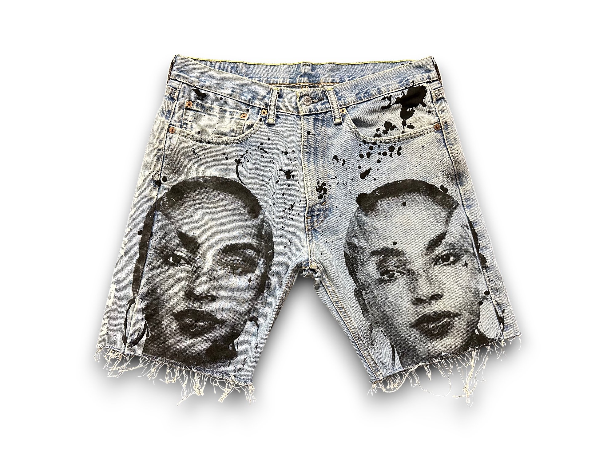 Levi's 505 Sade Adu Upcycled Reworked custom Screen Print light wash denim Shorts
