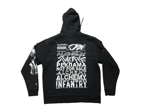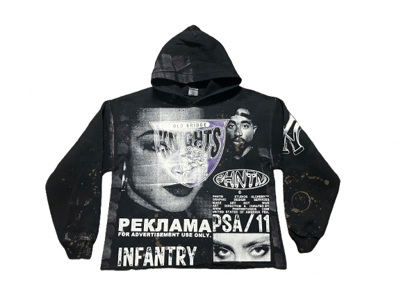Sade 2Pace NY Infantry Knights custom screen print black/white bleached hoodie