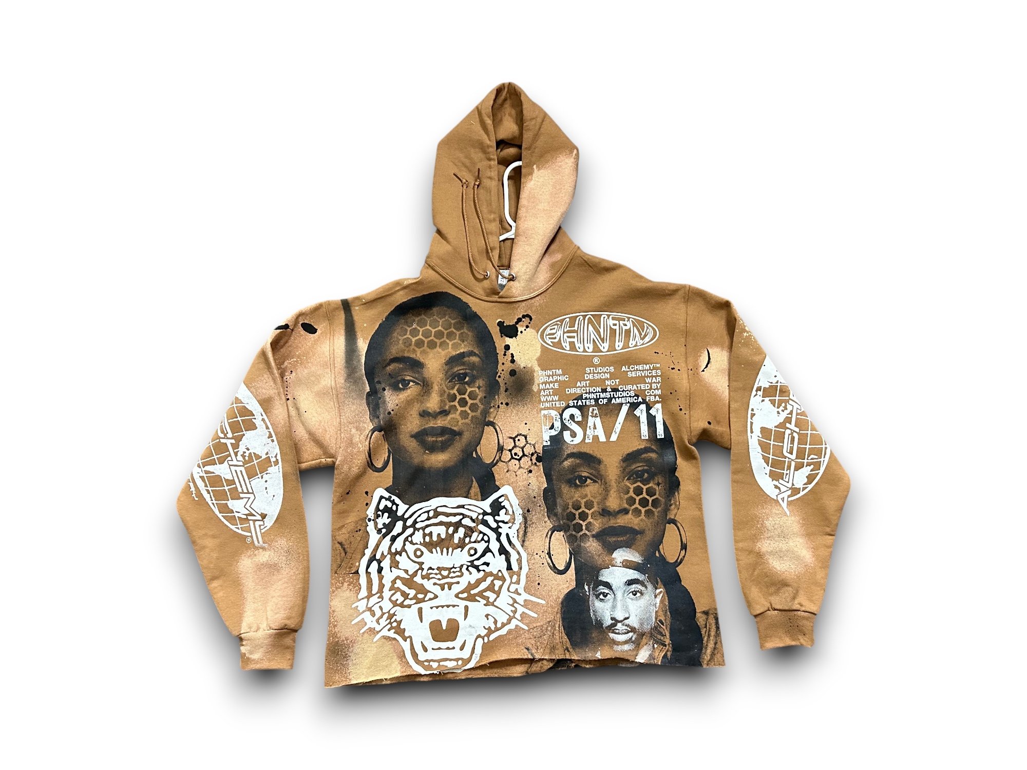 Sade Adu 2Pac custom upcycled reworked Screen Print brown bleached hoodie