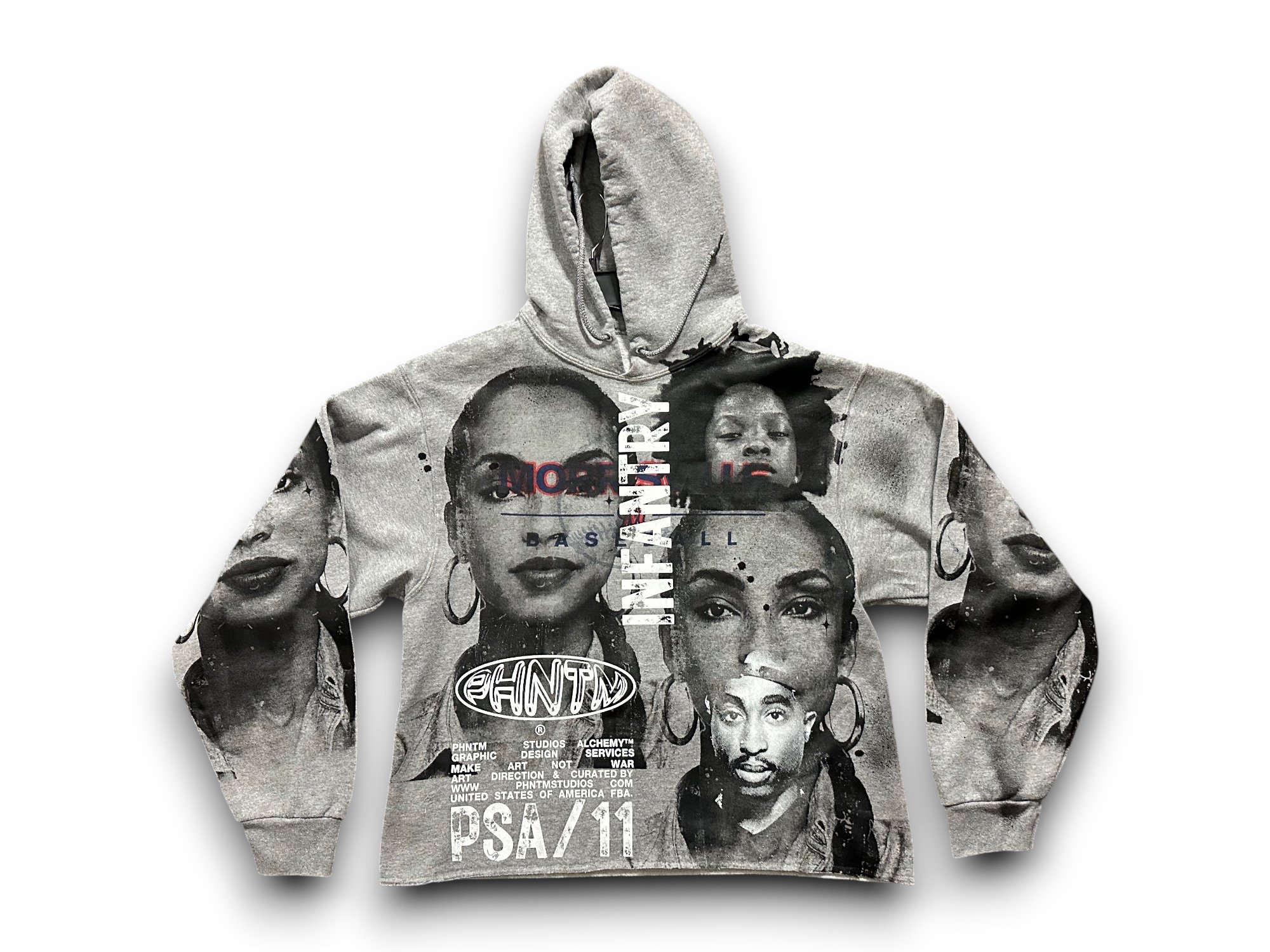 Sade Adu 2pac custom upcycled reworked Screen Printb gray hoodie