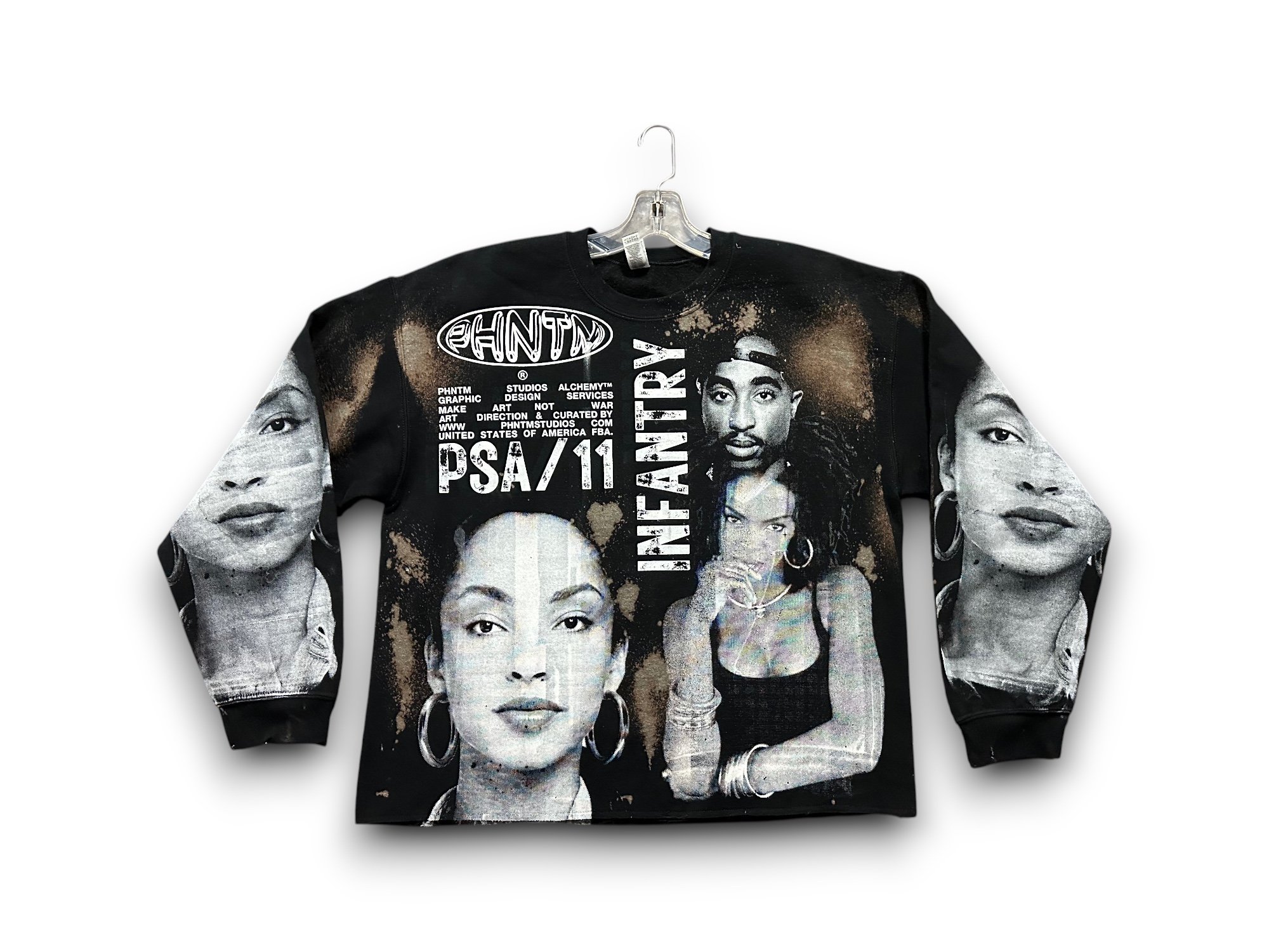 Sade Adu 2pac lauren Hill custom upcycled reworked Screen Print black bleached hoodie