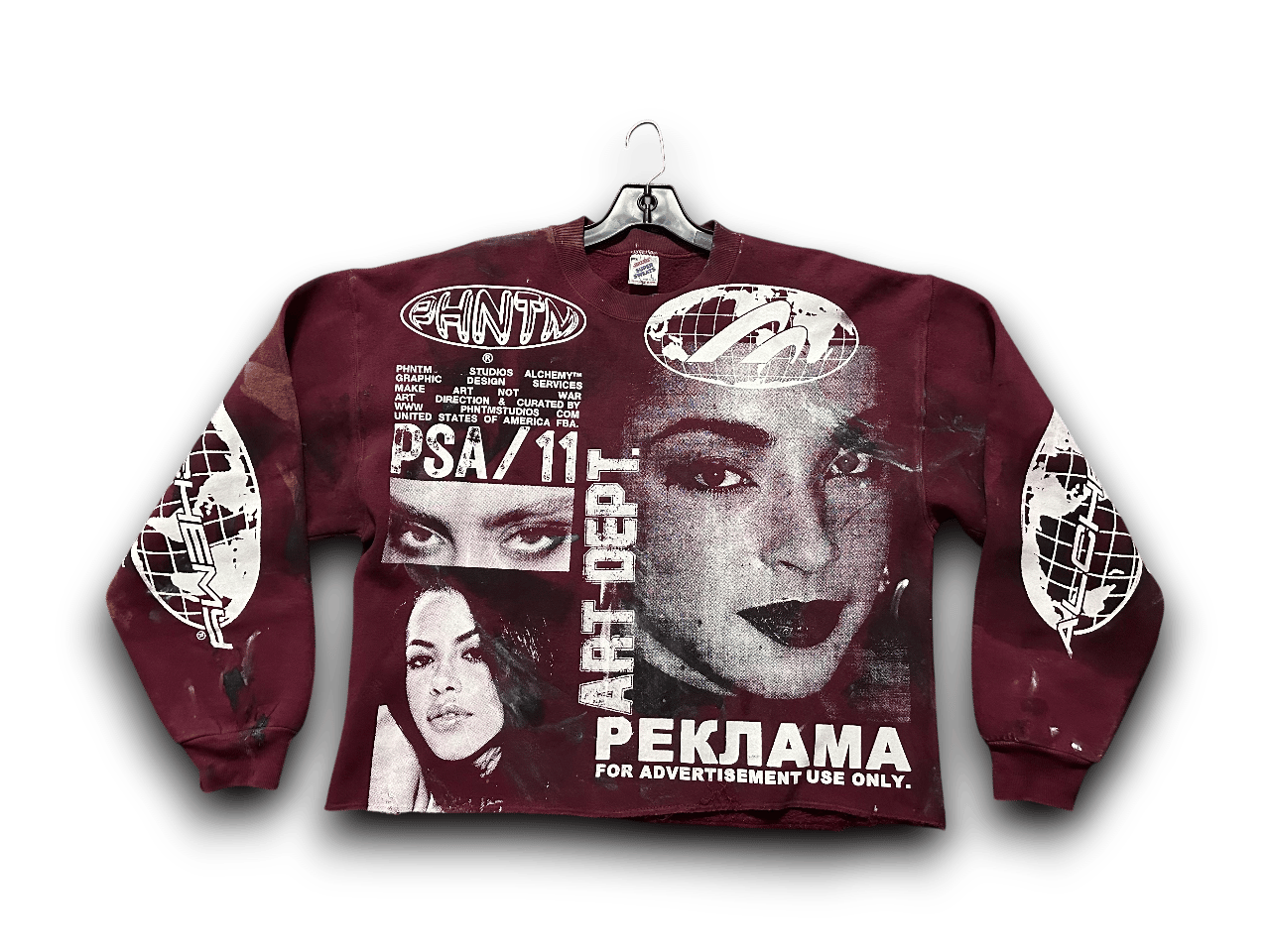 Sade Adu Aaliyah art dept upcycled screen print burgundy/white sweatshirt