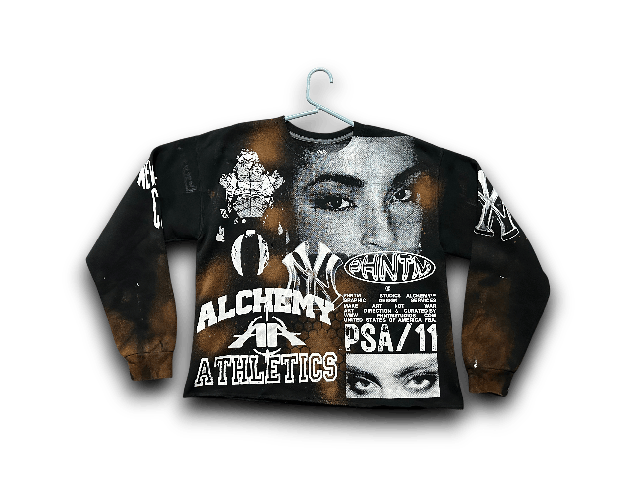 Sade Adu Akira Tetsuo NY art dept upcycled screen print black/white sweatshirt