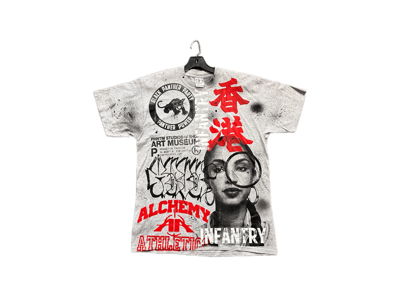 Sade Adu Black panther party graff Kanji art dept gray/black/red T-shirt