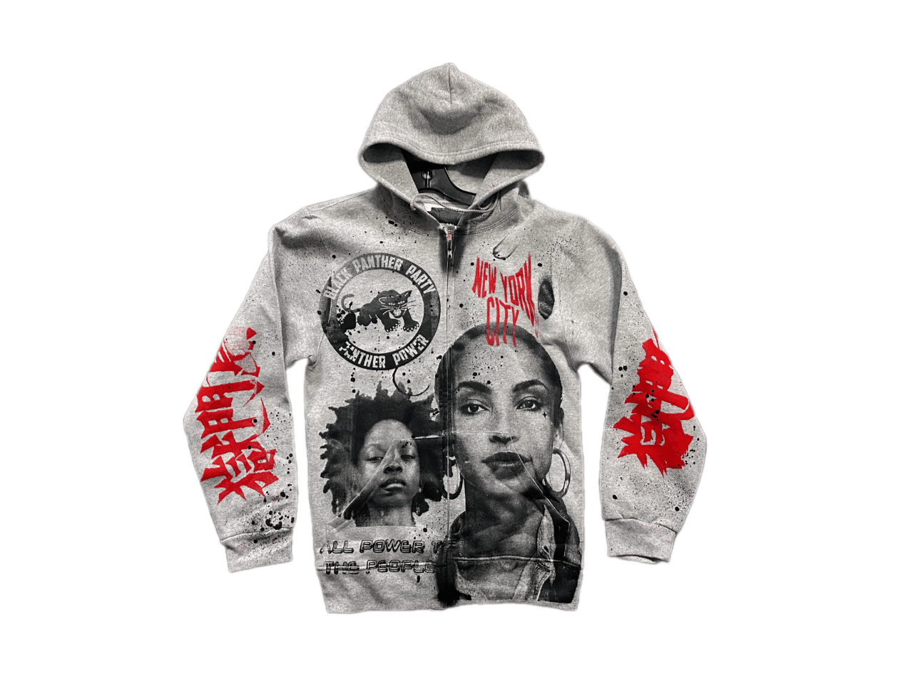 Sade Adu black panther party NYC art dept kanji gray/black/red zip up hoodie