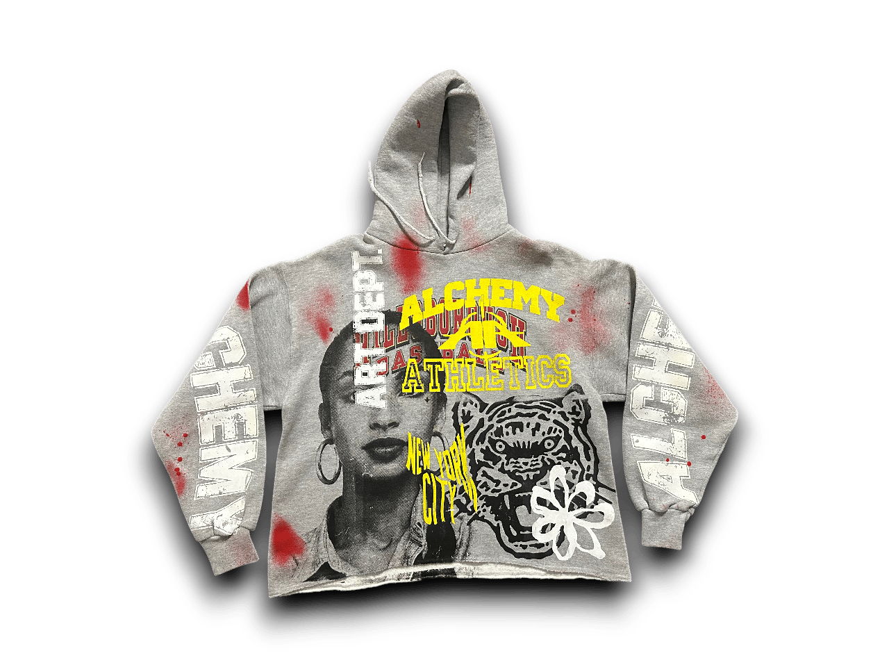 Sade Adu black panther party NYC art dept upcycled screen print gray/yellow hoodie