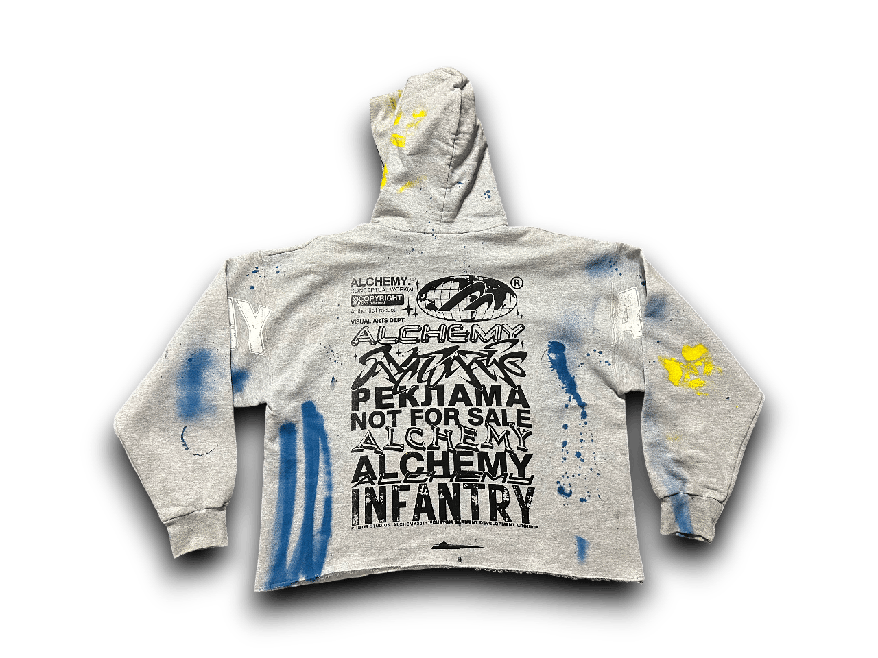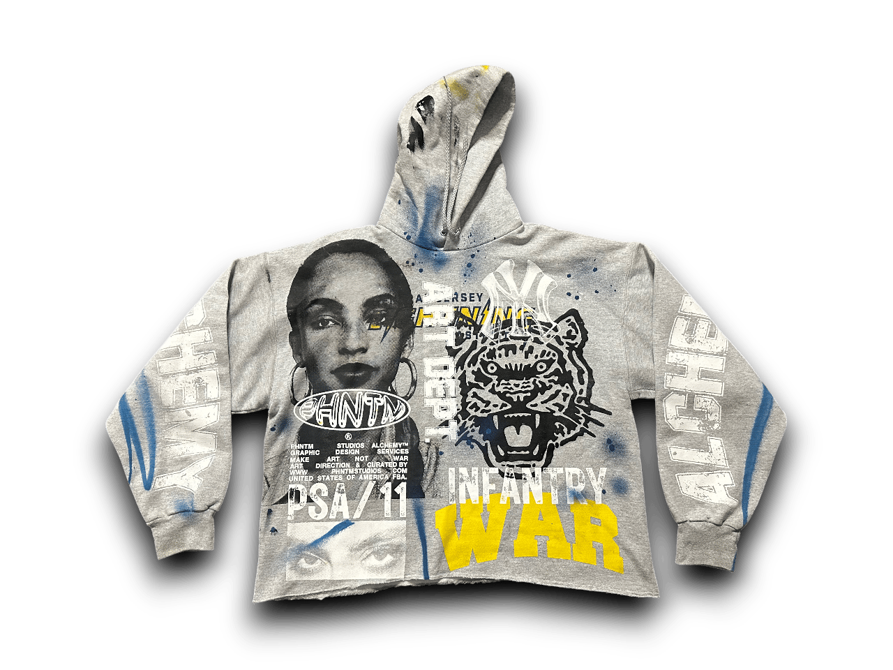 Sade Adu Black panther party war art dept upcycled screen print gray/black/blue hoodie