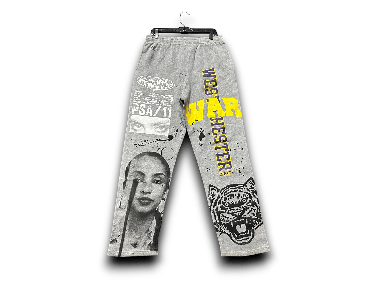 Sade adu black panther party war west chester art dept upcycled screen gray/black/yellow sweatpants
