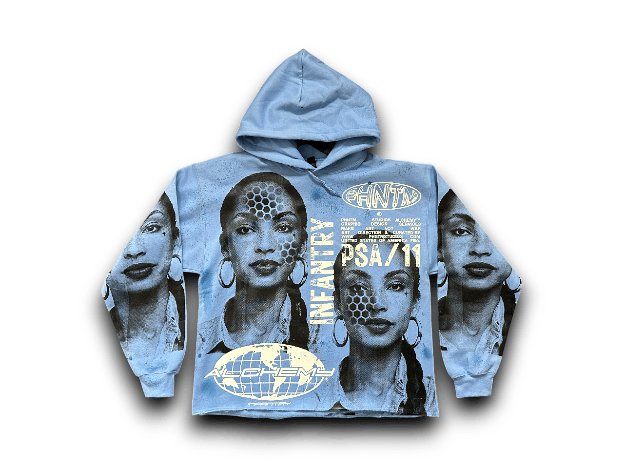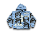 Sade Adu custom upcycled reworked Screen Print baby blue hoodie