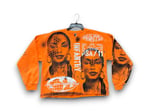 Sade Adu custom upcycled reworked Screen Print safety orange sweatshirt