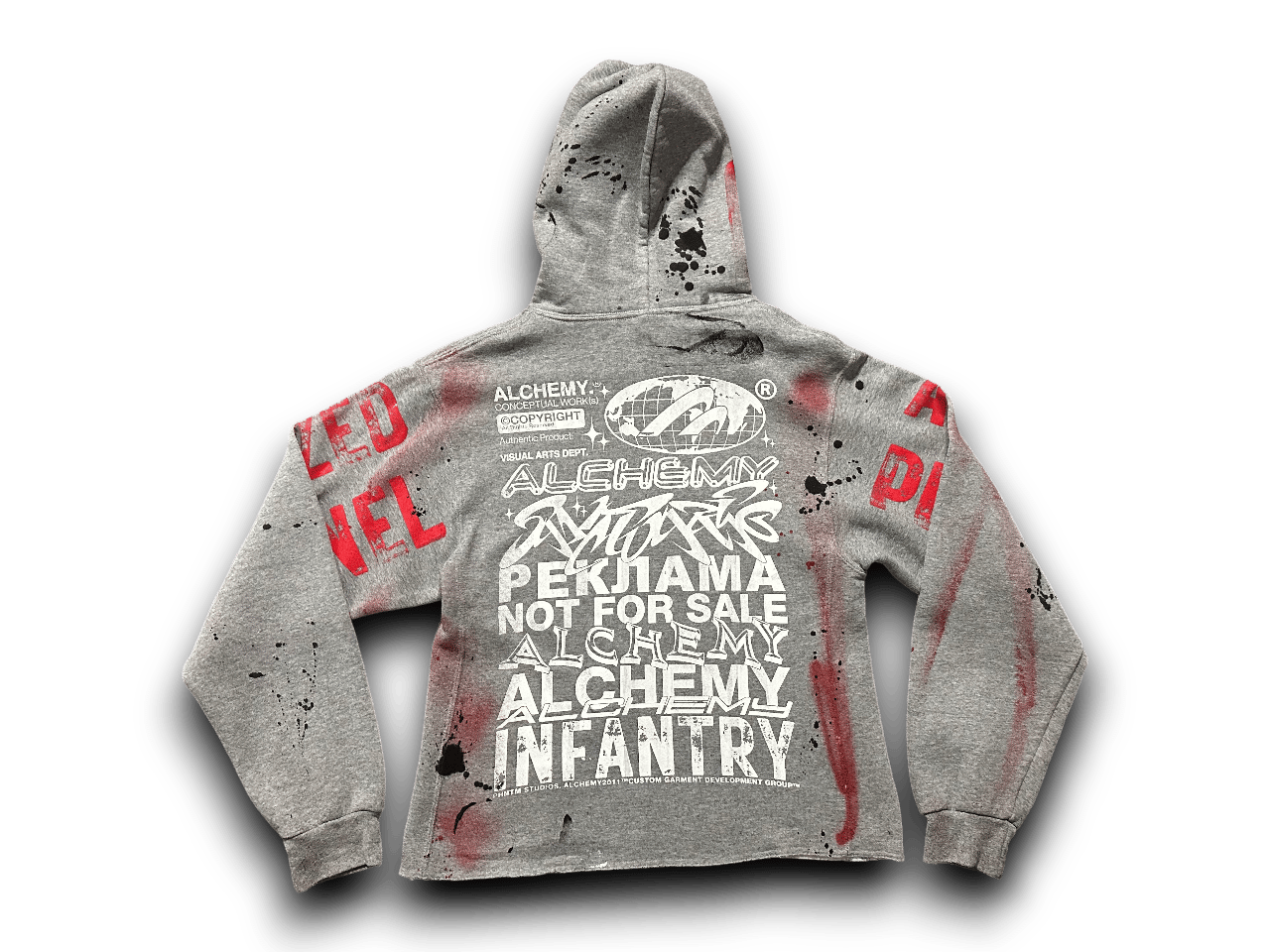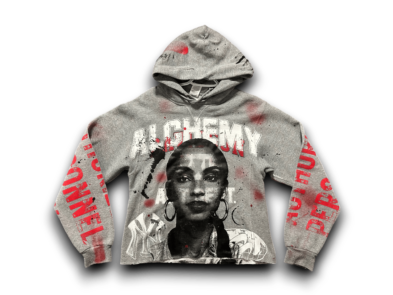 Sade Adu NY art dept upcycled screen print gray/red/white hoodie