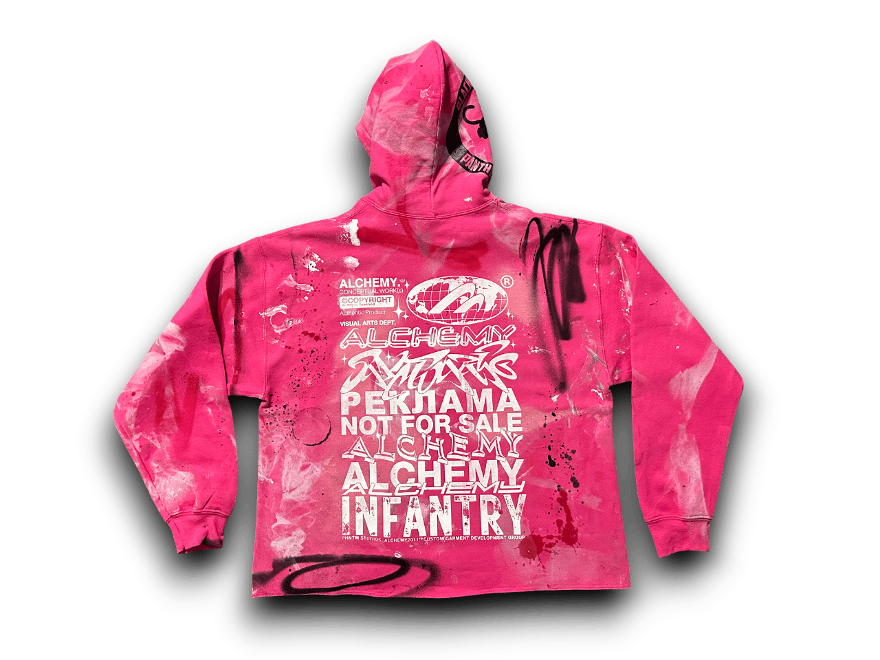 Sade black 2pac panther party art dept upcycled screen print pink/white hoodie