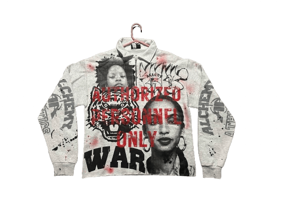 Sade Black Panther party war custom screen print gray/red quarter zip sweatshirt