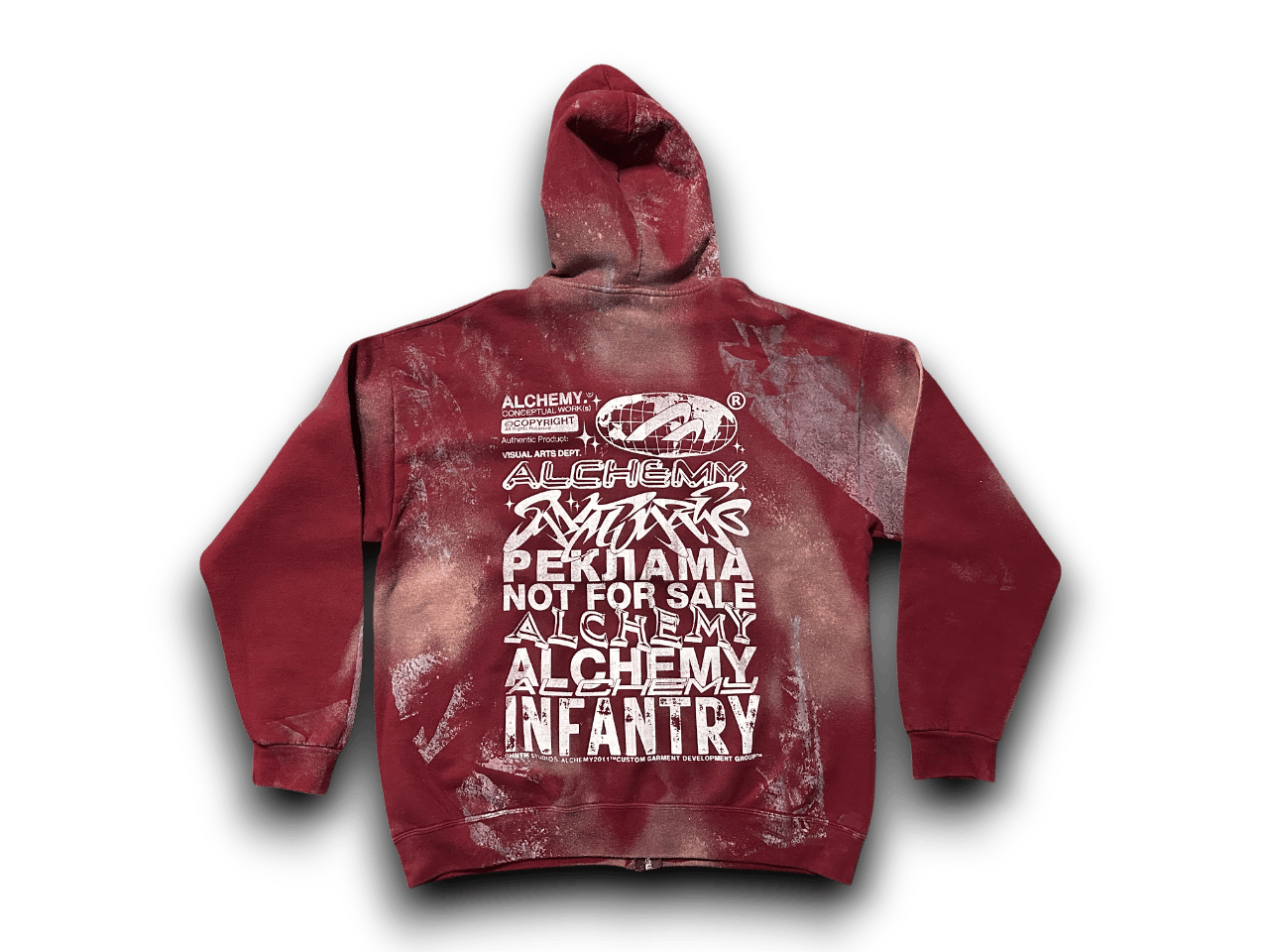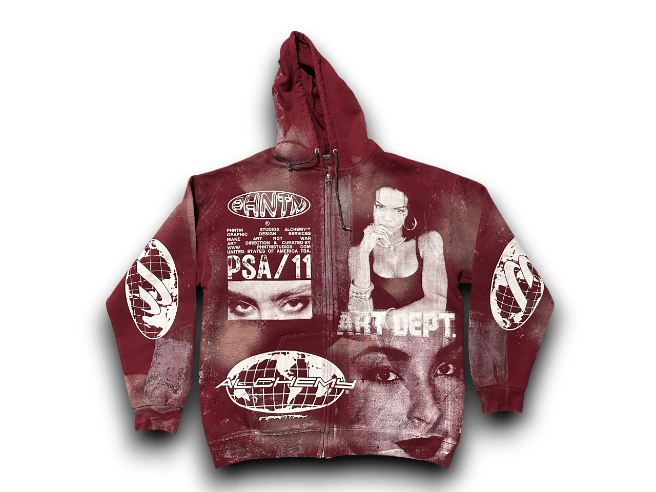 Sade Lauren Hill art dept upcycled screen print baby burgundy/white zip up hoodie